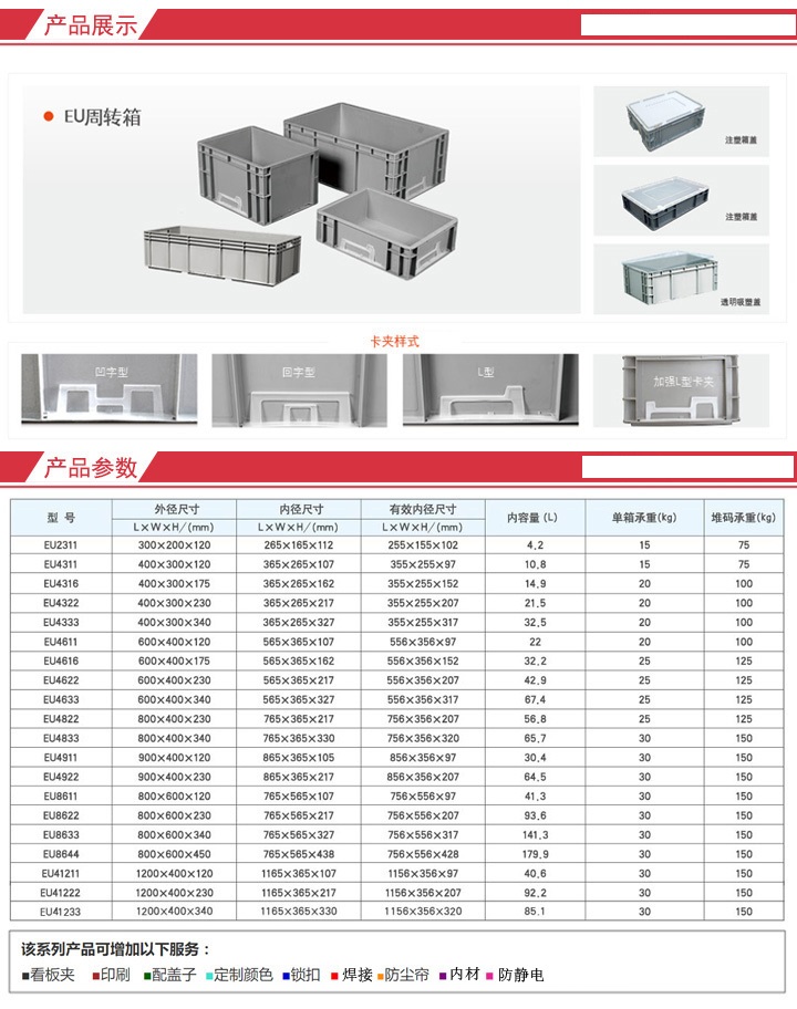 注塑类:拥有40000克、30000克、20000克、10000克、6300克、3200克等十余台先进的注塑机(海天牌和伊之密),专业生产:塑料托盘、环卫垃圾桶、周转箱、周转筐、周转箩、塑料水箱及各种异形定制产品,各种型号规格达百余种。产品广泛用于食品、医药、水产养殖、五金,电子、机械、纺织、化工等领域。